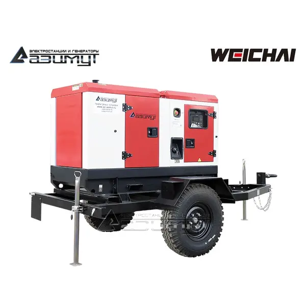 На стальной раме с виброопорами смонтированы: дизель генератор ДГУ в составе: - первичного четырехцилиндрового дизельного двигателя водяного охлаждения с механической регулировкой частоты вращения WEICHAI WP2.3D33E200 с промышленным глушителем и стандартным радиаторным блоком охлаждения,- синхронного бесщеточного трехфазного генератора 380 В AZIMUT Z184F номинальной мощностью 20 кВт c автоматической регулировкой напряжения, шкаф управления с автоматическим выключателем и контроллером HGM6120 с жидкокристаллическим дисплеем, комплект аккумуляторных батарей, стальной топливный бак интегрирован в конструкцию рамы, на раму установлен всепогодный капот, дизель генераторная электростанция установлена на шасси. НАЗНАЧЕНИЕ