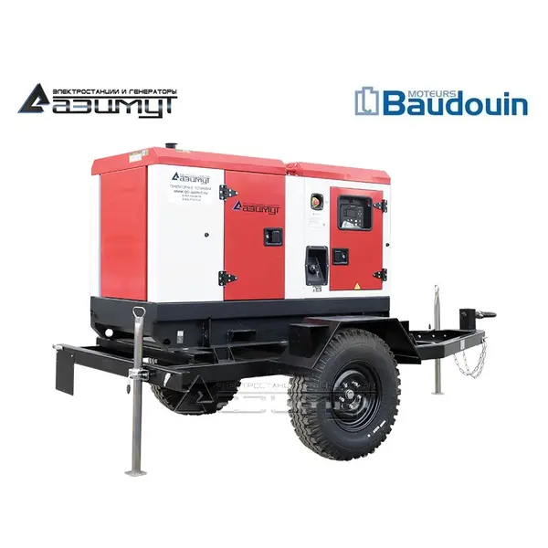 На стальной раме с виброопорами смонтированы: дизель генератор ДГУ в составе: - первичного четырехцилиндрового дизельного двигателя водяного охлаждения с механической регулировкой частоты вращения BAUDOUIN MOTEURS 4M06G35/5e с промышленным глушителем и стандартным радиаторным блоком охлаждения,- синхронного бесщеточного трехфазного генератора 380 В EVOTEC TCU188C номинальной мощностью 20 кВт c автоматической регулировкой напряжения, шкаф управления с автоматическим выключателем и контроллером LOVATO RGK800 с жидкокристаллическим дисплеем, комплект аккумуляторных батарей, стальной топливный бак интегрирован в конструкцию рамы, на раму установлен всепогодный капот, дизель генераторная электростанция установлена на шасси. НАЗНАЧЕНИЕ