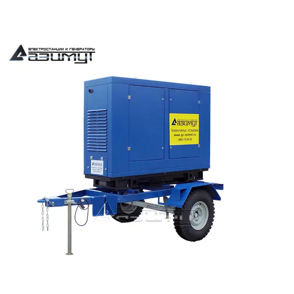 На стальной раме с виброопорами смонтированы: дизель генератор ДГУ в составе: - первичного четырехцилиндрового дизельного двигателя водяного охлаждения с механической регулировкой частоты вращения AZIMUT 4R360D, объемом 3,61 литра и номинальной мощностью 30 кВт, с промышленным глушителем, стандартным радиаторным блоком охлаждения, - синхронного бесщеточного генератора AZIMUT Z184F номинальной мощностью 20 кВт c автоматической регулировкой напряжения, шкаф управления с автоматическим выключателем и контроллером HGM6120 с жидкокристаллическим дисплеем, комплект аккумуляторных батарей, стальной топливный бак интегрирован в конструкцию рамы, на раму установлен всепогодный капот, дизель генераторная электростанция установлена на шасси. НАЗНАЧЕНИЕ