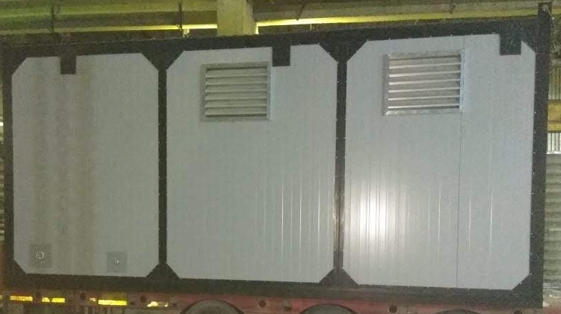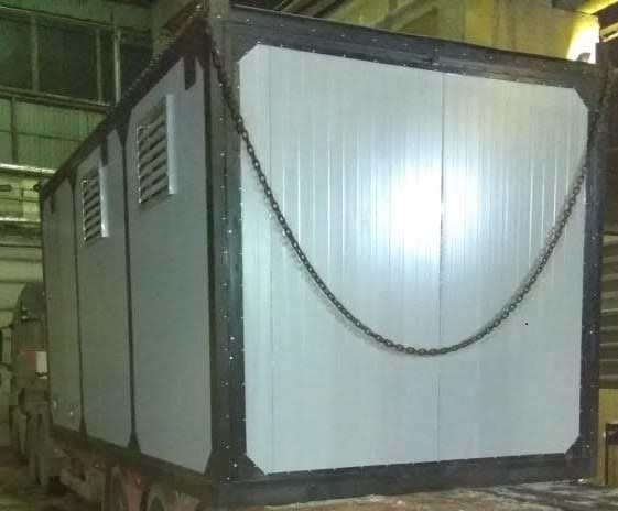 - Контейнер изготовлен на базе сварного каркаса, обшитого сэндвич-панелями (стены и потолок). Устройство панели: двухслойный лист стали толщиной 0,55 мм с полимерным покрытием производства «Polyster», однослойный качественный утеплитель из негорючих минераловатных плит с основой на базальтовых породах (Финляндия).