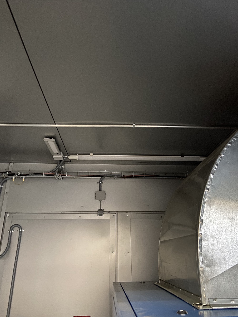 - Система аварийного освещения 12/24В с выключателем. Используется светодиодная лента. Питание подаётся от основного электрошкафа.