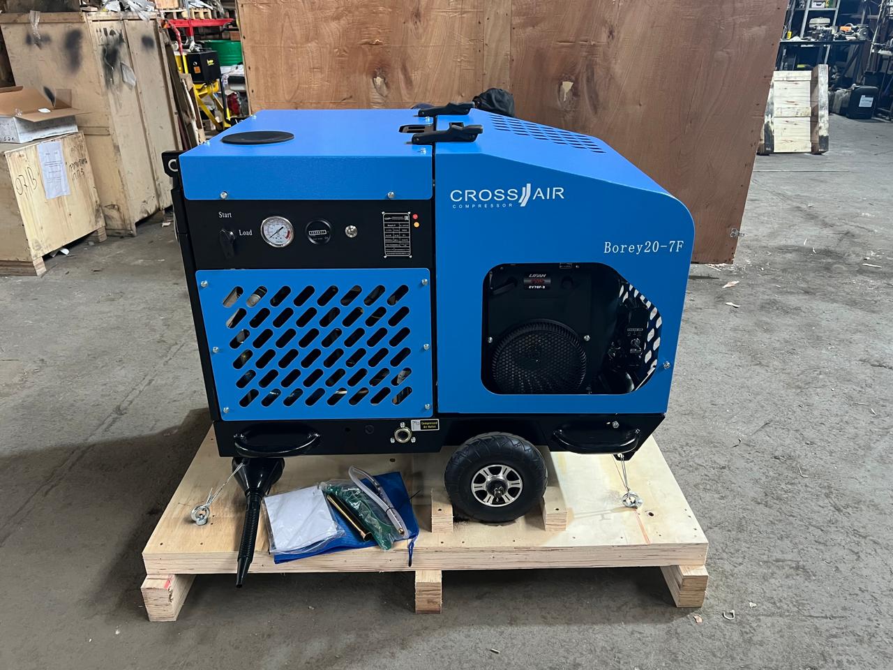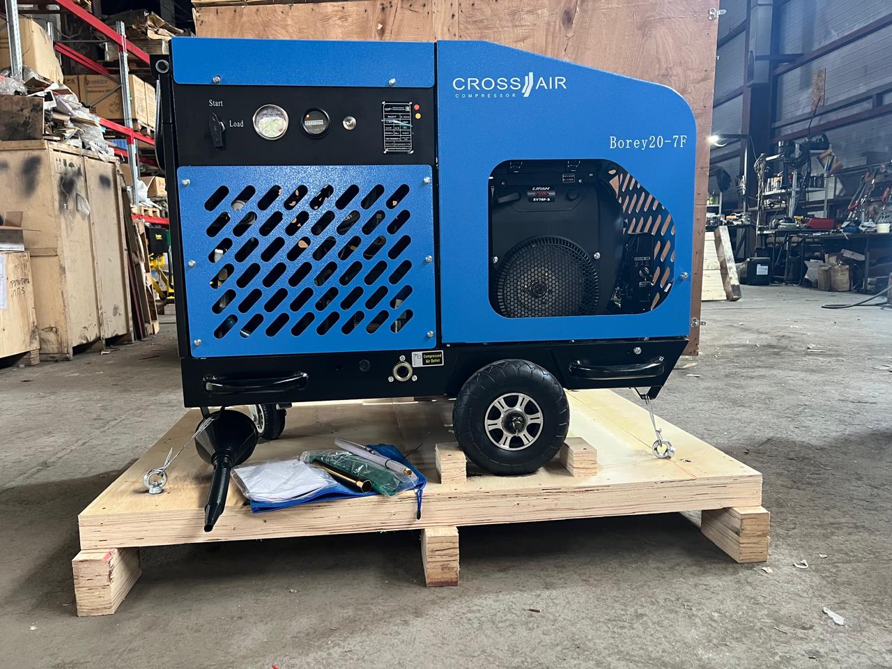 Компрессор CrossAir Borey 20-7B представляет собой универсальное оборудование, предназначенное для производства сжатого воздуха в условиях, когда нет доступа к стационарным сетям энергоснабжения. Агрегатный состав компрессорной установки соответствует современным отраслевым требованиям: мощный бензиновый двигатель, прямая система привода, роторный маслонаполненный блок с надёжной винтовой группой и усовершенствованная система циркуляции масла. Эта компрессорная станция подходит для широкого спектра задач автономного пневмообеспечения, отличается низким уровнем шума и экономичным расходом топлива. Полного бака хватает на 10–12 часов непрерывной работы. Версия B разработана для упрощения процессов погрузки, разгрузки и транспортировки компрессора в кузове малотоннажного транспорта. Все технические узлы установлены на высокопрочное рамное основание и дополнительно виброизолированы. Корпус компрессора с атмосферостойким покрытием, которое также выполняет звукоизолирующую функцию, защищён от внешних воздействий усиленным каркасом. Для обеспечения безопасности погрузочных работ конструкция оснащена усиленными такелажными петлями.