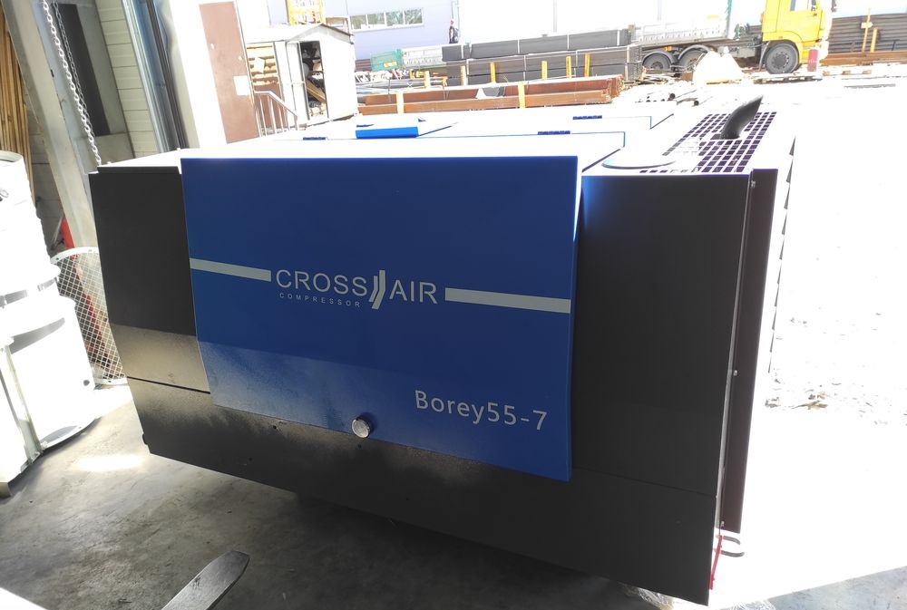Винтовой компрессор CrossAir Borey 55-7B на раме, представляет собой полностью готовую к эксплуатации компрессорную станцию.