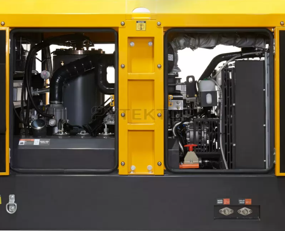 - Топливный бак высокой ёмкости позволяет эксплуатировать компрессор полную рабочую смену при 100 %-ной нагрузке без долива топлива