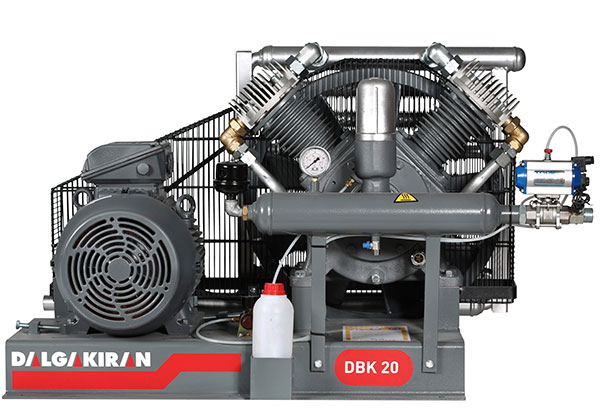 DALGAKIRAN DBK 20 7 принадлежит к поршневым компрессорам — надежной в эксплуатации и простой в монтаже и обслуживании технике для производства сжатого воздуха. Мощность двигателя модели составляет 15 кВт, производительность 3709 л/мин, рабочее давление — 40 бар.
