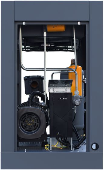 Винтовой компрессор Atom А-18.5 10 IP65 с частотным регулированием производительности и двигателем на постоянных магнитах имеет мощность двигателя 18.5 кВт и достигает производительности 2420 л/мин при давлении 10 бар.