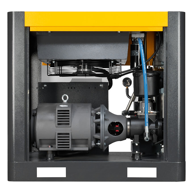 - Прямой привод без редуктора обеспечивает высокий КПД и минимальные требования к обслуживанию. Винтовой блок имеет низкие обороты, что увеличивает его ресурс.