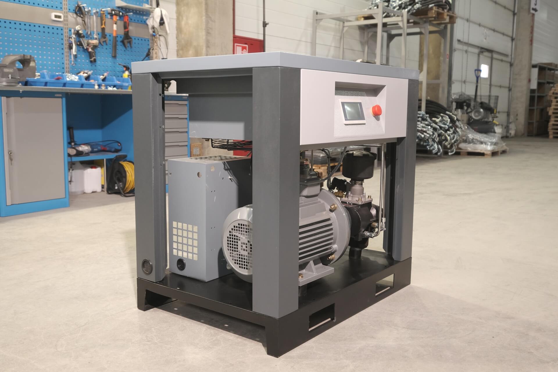 Частотный преобразователь Folinn обеспечивает плавный запуск и остановку компрессора, снижает пусковые токи двигателя и защищает устройство от перегрузок, короткого замыкания или потери фазы.