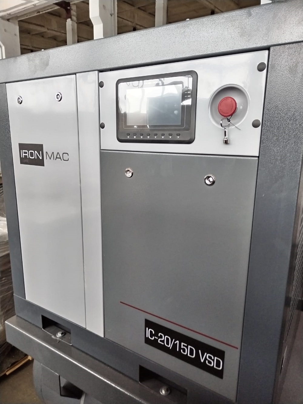 Винтовой компрессор IronMac IC VSD является лидером флагманской линейки, собран на прочной стальной раме. Компрессор предназначен для средних, крупных и больших предприятий, а все узлы конструкции фиксируются к жесткому основанию и дополнительно изолируются от вибраций. На серии АМ реализована система настоящего прямого привода без муфты и дополнительных соединений, а ротор двигателя находится на валу ведущего ротора, уровень защиты по классу IP 23 и IP 55.